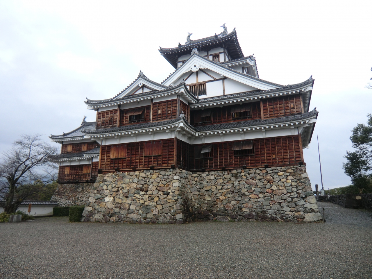 本丸部分が残っており、曲輪・石垣・本丸に移築された丸銅門脇番所が遺構である。復興天守閣だが戦国時代風の趣のある天守閣だ。