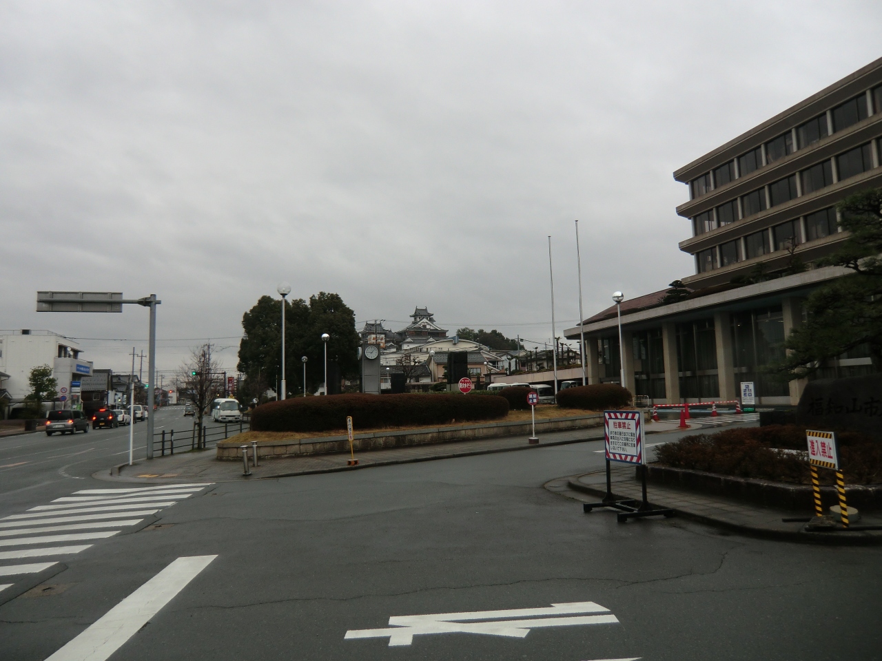 福知山線を大阪方面から来ると福知山駅の手前で小高い丘にそびえる復興天守閣が見える。福知山駅より15分程歩く。