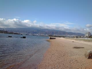 海を見ると色とりどりのウィンドサーフィンが沢山滑っていて綺麗です。波打ち際にはクラゲがよく落ちてます笑 それとフラミンゴみたいな大きな海鳥が優雅に歩いていますね。神戸方面には大きな山がそびえたってきれいです。夕方になると向こう岸の橋にオレンジの光が点々と灯ってずっと眺めていたくなります。