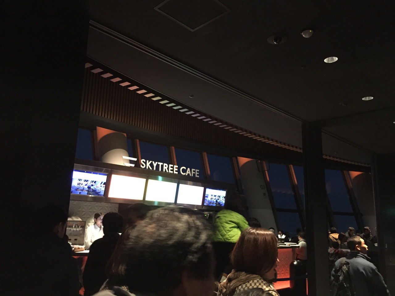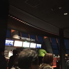 東京スカイツリー展望フロア350にあるカフェです。スタンディングなので気楽ですが、この日は土曜日の夕方で大変に混んでいて、残念ながらオーダーを諦めました。オリジナルドリンクやソフトクリームなどを頂けるようです。