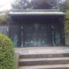増上寺の安国殿で裏、徳川家墓所の正門です。今回は墓所の特別公開日で、墓所の中に入ることができたのですが、この門は閉まったままでした。緑色の門で、鋳型に流し込んで作った門だそうです。葵の御紋と龍が鋳抜かれています。とても重厚な感じで、徳川家の墓所を守っている感じが出てます。