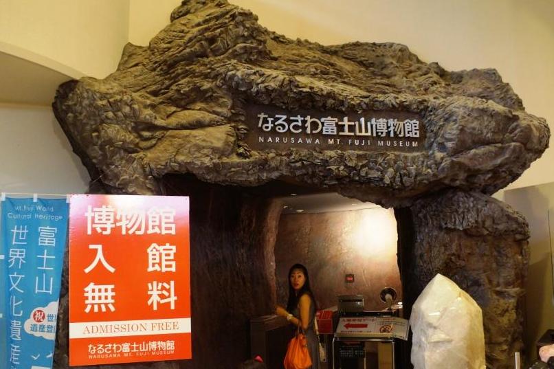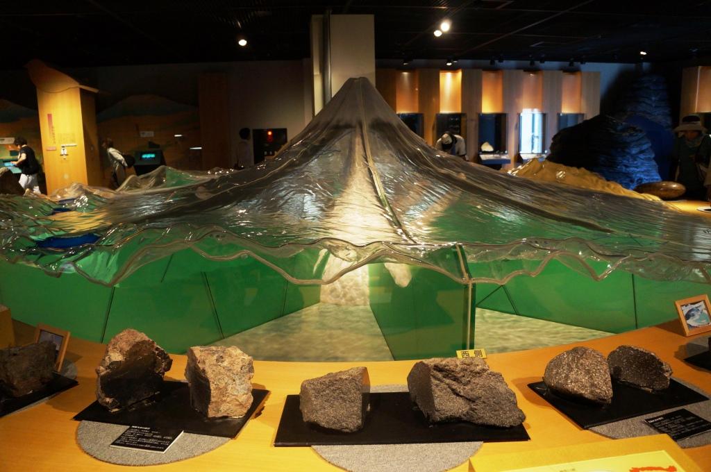 なるさわ富士山博物館は、道の駅なるさわの敷地内にある入場無料の博物館です。鳴沢村には特別天然記念物「溶岩樹型」があることからここに造られたようです。中には恐竜の模型があったり、マグマの様子が分かる富士山の大型模型があり、石の展示もあります。導線の先には、綺麗な石やパワーストーンのアクセサリーを販売するコーナーがあり店員が待ち構えています。