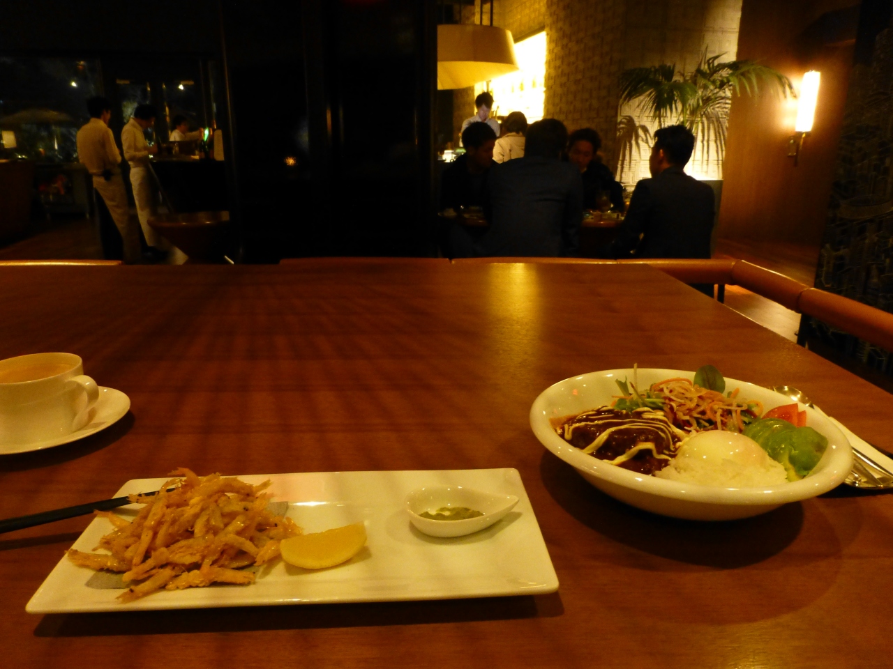 今回は一人で夕食に利用しました.メインはやはり数人で少し飲む感じの利用でしょう.インテリア・照明もそんな感じです.ロコモコボウルと白エビのから揚げを食べました.ロコモコボウルは業務用食材ですねという感じでしたが量もあって良かったです.白エビのから揚げは揚げたてでとてもおいしかったです.ウェイター・ウェイトレスさんたちがとても良く動いていたのが印象的でした.