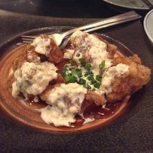 夕食代りに訪問。胡麻カンパチ、チキン南蛮、塩焼きそば、枝豆、ポテトフライ、おにぎりと軽めに済ませました。胡麻カンパチは、つけタレも良く、美味しかったです。その他も美味しかったですが、お値段が100円ぐらいずつ高いかなという印象です。