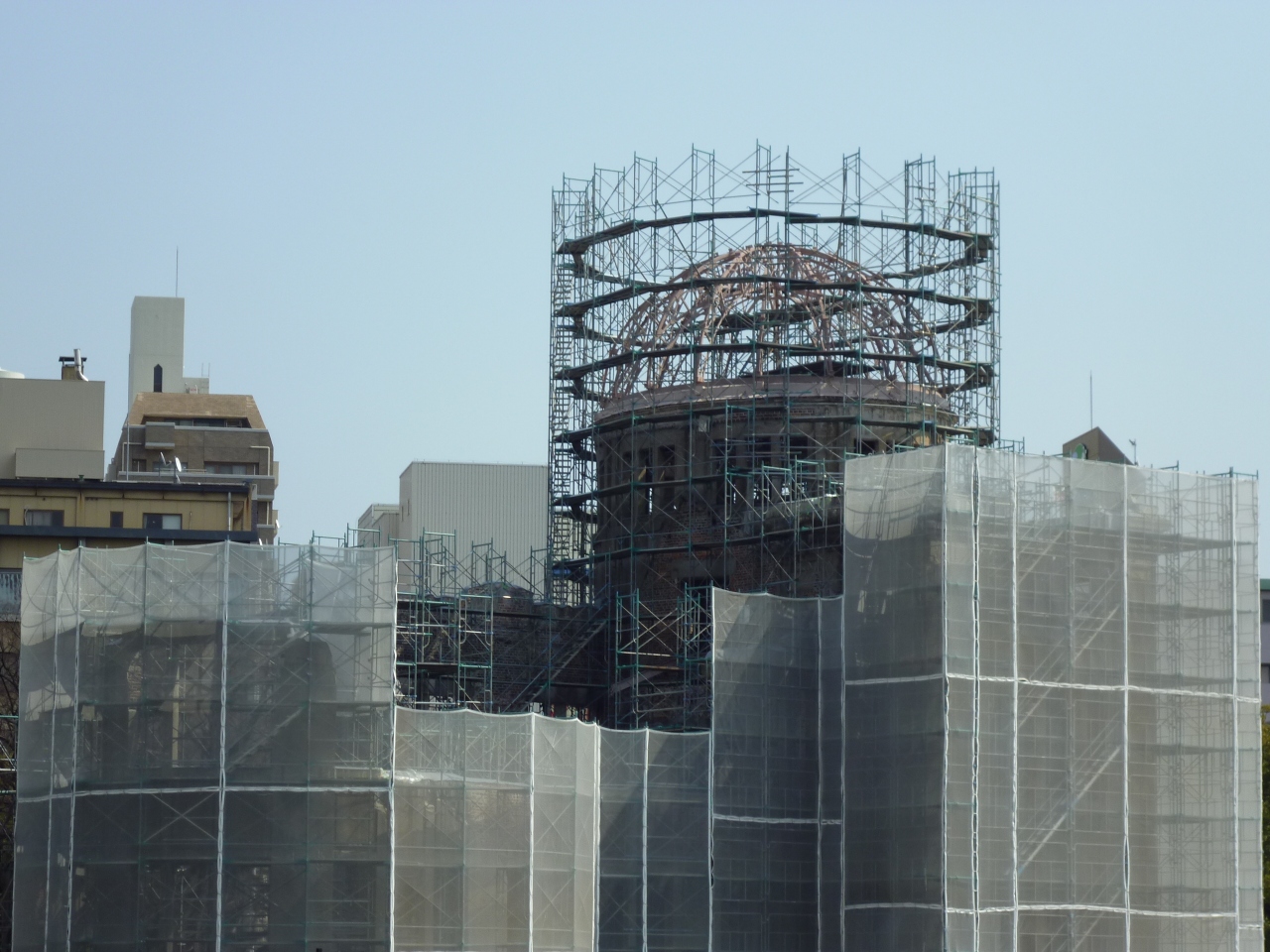 ドームの骨組みだけを残して、何もかも焼き尽くされた原爆ドームは、戦争を二度と起こしてはいけないと、語り続けています。世界遺産にも登録されていて、核兵器のの残酷さを今後もたくさんの人々に伝えていく役割をしています。今日は、足場が組んであって、よく見えませんでした。