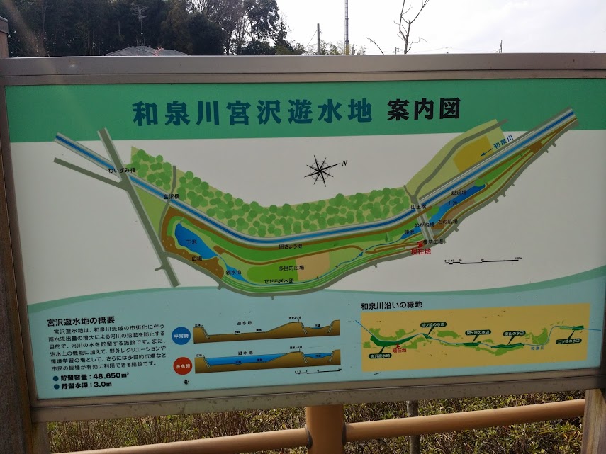 この終点の遊水地は、眼鏡橋が有名で、子供たちが遊ぶ池やおおきなひろばがあります。