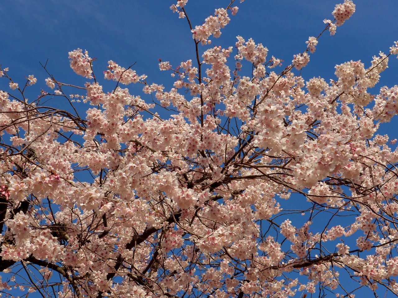 正門から入った左手、コンドル像の近くに一本だけ桜(ソメイヨシノ)の木があって、三月中旬には満開でした。