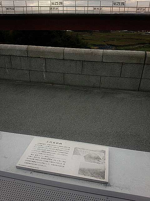 橋の真ん中に台のようなものが作られており、案内板が並んでいました。