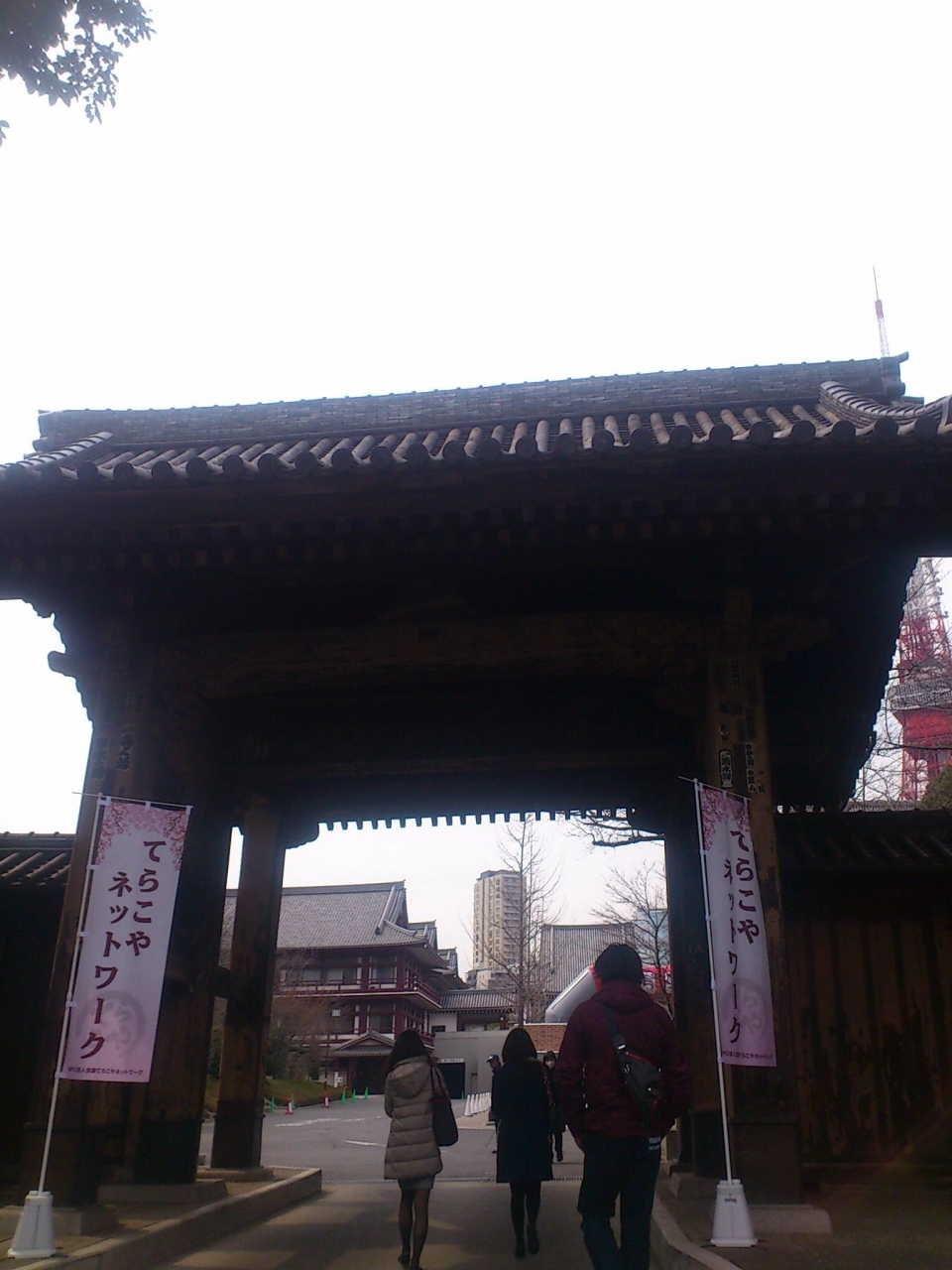 増上寺の正門の三解脱門の南にある門です。黒門と呼ばれていますが、もともとは方丈門であったものをこの場所に移設されたものです。三解脱門が朱色なのに対して、黒漆で塗られていたので、黒門と呼ばれ対比されています。かなり漆の部分が剥げていますが、それなりに歴史を感じます。今は通用門です。