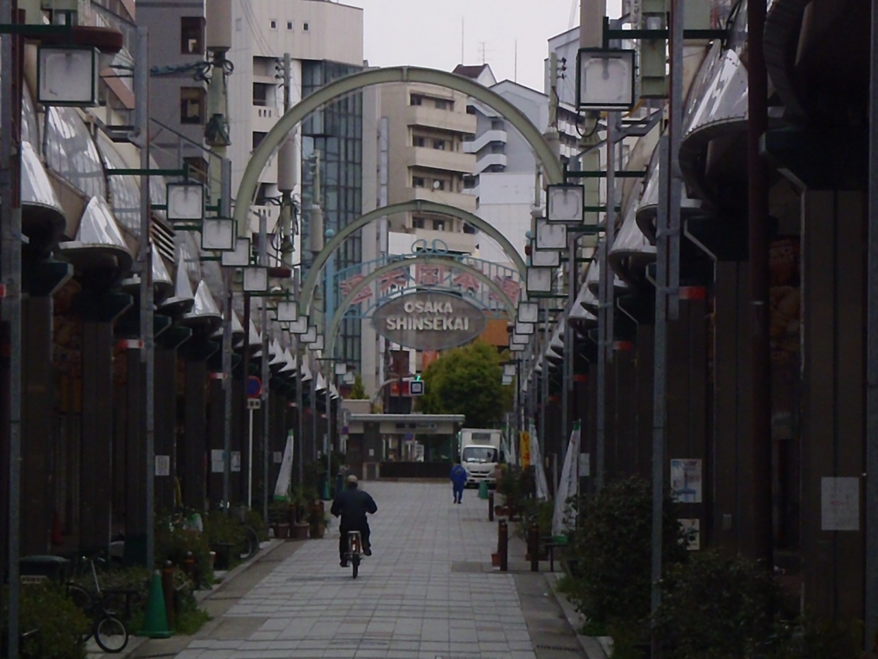 建物が込み入っているなか、通天閣の全体が見える角度は、新世界の北西側から通天閣までの通りが最適な撮影スポットで最高の場所であり象徴的な通りです。