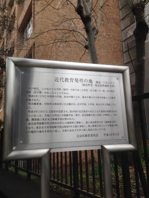 「Tokyo Medical and Dental University」なので「TMDU」という名称も定着しつつあります。そんなハイカラな名前をもつこの大学ですが、近代教育発祥の地としても知られいます。向かい側に湯島聖堂があります。ここは、 昌平坂学問所となり、昌平学校、東京大学へと発展していったのです。