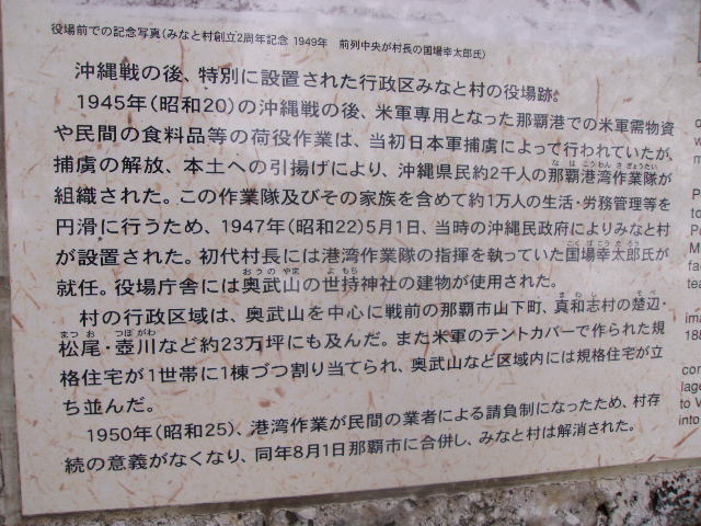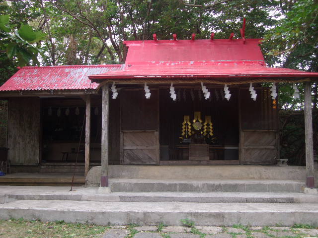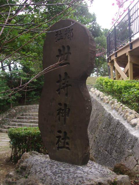 奥武山公園の北寄り、セルラースタジアムのすぐ近くにひっそりと佇んでいるのがこちらの神社です。私は1月下旬に訪問しましたが、もう桜が咲いていて、流石は沖縄だなと驚かされました。尚、ここは立地的にも沖縄戦の後に特別に設置された行政区「みなと村」の役場が置かれた場所でもあり、戦後の混乱期の復興を支えた場所として、歴史的にも重要なスポットです。それに関する案内板なども設置されていますので、是非ご一読下さい。