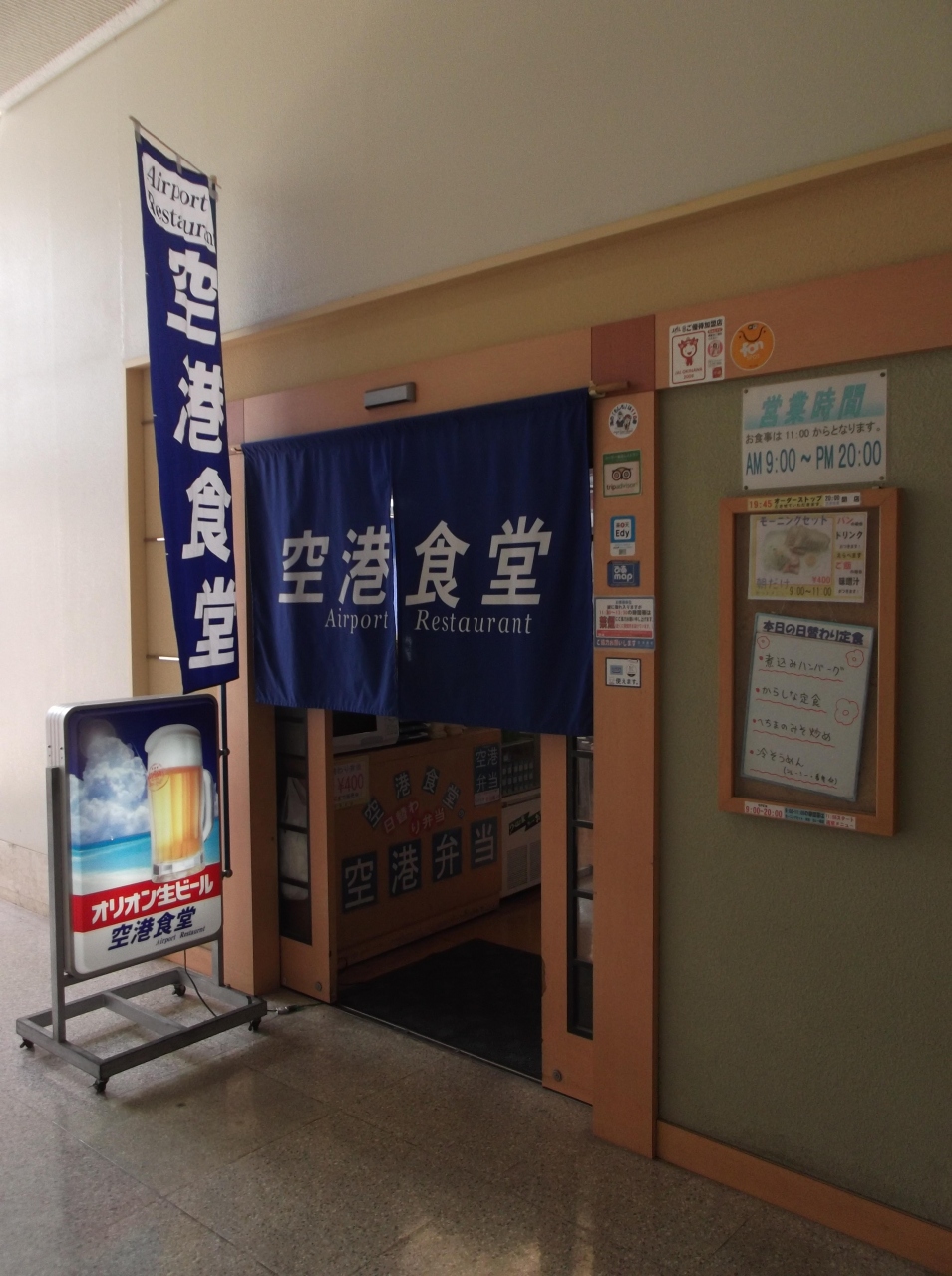 那覇空港国内線ターミナル到着フロアの隅っこにあります。元々は空港スタッフ専用の食堂だったのですが、一般客にも開放するようになったそうです。