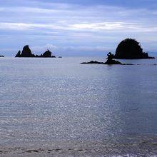 玉砂利が中心の海岸線は人気も少なく穴場的海岸ですが、海水浴場としてよりも、夕陽の景色がおススメです。駿河湾に沈む夕陽の美しさがウリの旧西伊豆町のなかでもここの景色の良さはすばらしさは有名で、沖合に浮かぶ小島に沈む光景は神秘的です。