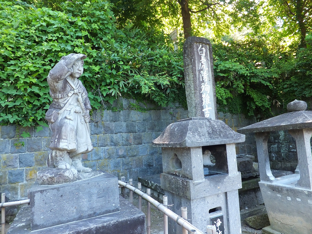 鶴ヶ城の方向を眺めるような少年隊士の像が建てられています