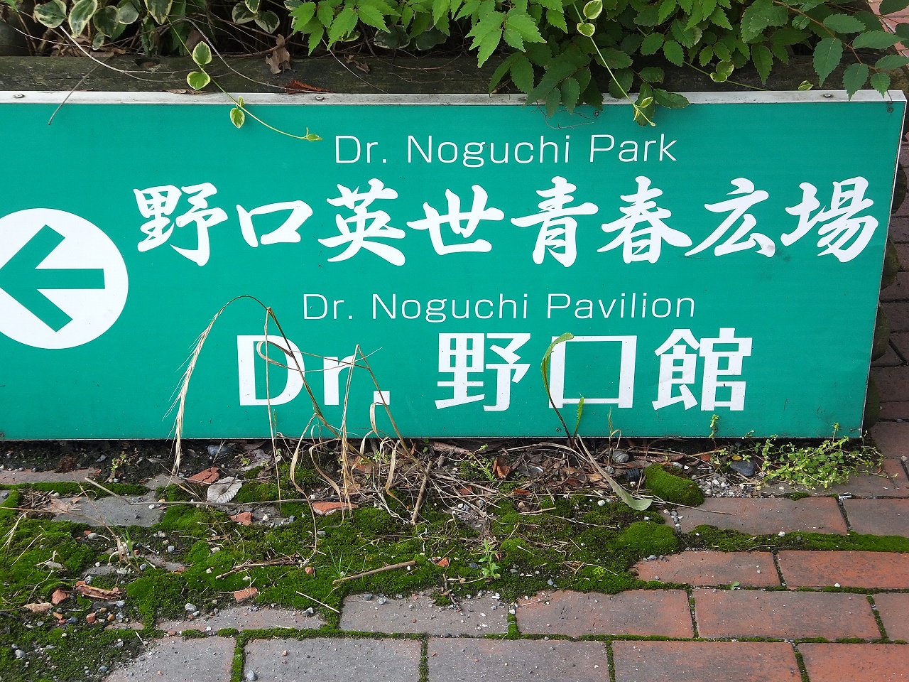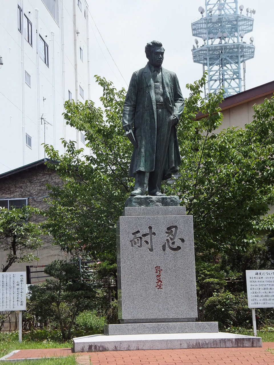広場の奥には 千円札でおなじみの野口博士の銅像が立っていました。