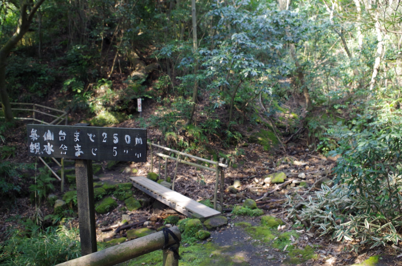 背後には山が迫っており、登山道が整備されています。2か所の茶屋の跡が展望台となっており、絶景が広がっています。登山口からずっと階段が続きますが、20分足らずで最も奥の集仙台まで登っていけました。