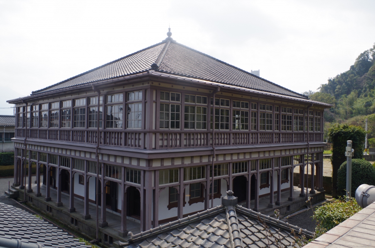 1867年に建設された、鹿児島紡績所で指導するイギリス人技師たちの宿舎だった建物です。薩英戦争の後でもあったため、技師たちは1年で帰国してしまいますが、その後は大砲製造支配所や西南戦争時の借病院として使用された歴史があります。