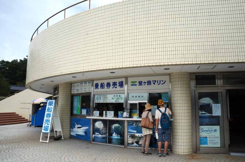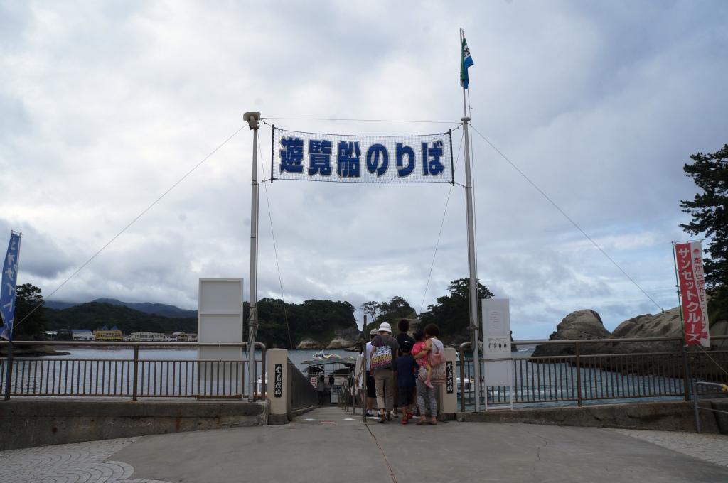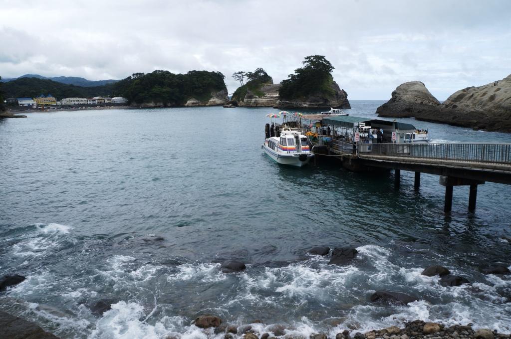 遊覧船は、漁船サイズで小さく定員50人足らずです。港から外海に出るときには船はかなり揺れるます。案内テープを聞きながら堂が島独特の海岸奇岩を見て回りますが、一番の見所は天窓洞です。真っ暗な洞窟の先には差し込む光に海面がエメラルドグリーンに輝き神秘的な光景です。