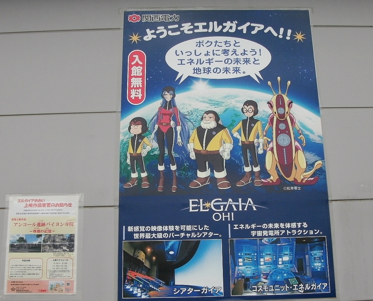 世界最大級の映像シアターでは、「生命の惑星の物語」「原子力発電所」「アンコール遺跡パイヨン寺院」というショートムービーを上映していました。1時間に1回程度、繰り返し上映されていて、上映時間は20分前後のもので、少しだけ見ましたが空間の中にいるかのような体感がありました。