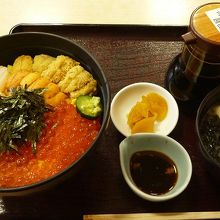 函館駅横のどんぶり横丁市場内にある店舗。店名にイクラの名称を使っていたのでイクラを含む海鮮丼を注文。イクラは漬けるものによって微妙に味が変わるものだが、この店のイクラはおいしいと感じた。鮮度についても良かったと思う。