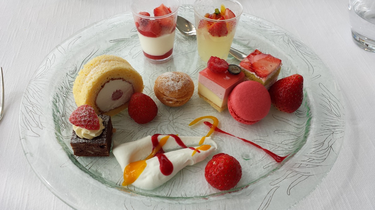 ○休のプラン1ドリンク付き、メイン&お好きなだけ選べるデザートと全4品¥4411(男性¥4983)の祝ランチ。