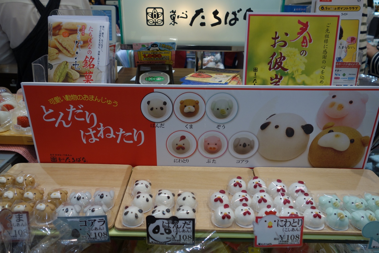 駅の構内にある商業スペースです。特にスイーツの充実っぷりが素晴らしく、甘いもの好きの僕はわくわくします。「菓心たちばな」の「動物饅頭」があまりにかわいらしく、子供へのおみやげに熊と鶏を買いました。こしあんの入った饅頭でした。