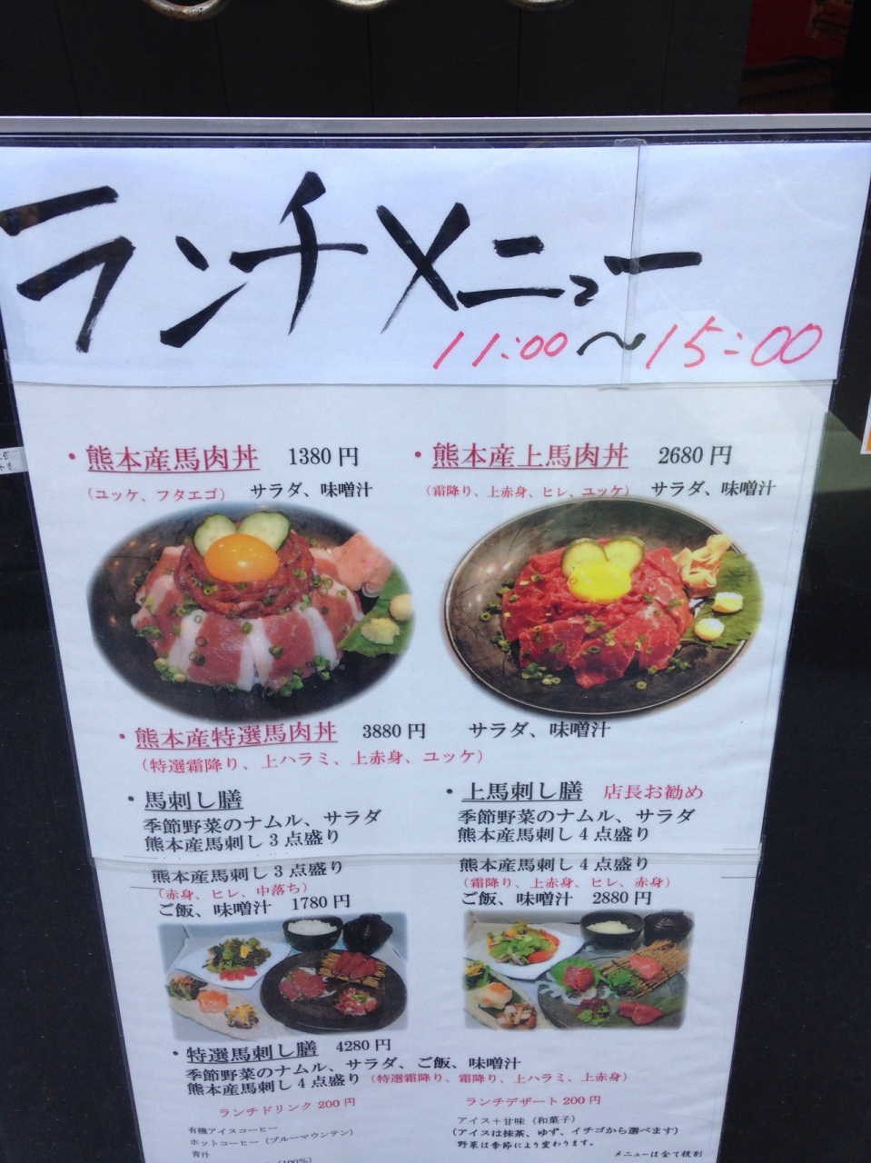 【ランパスで】馬菜 銀座本店@新白石ビルB1F【熊本県産馬肉丼 1000円】