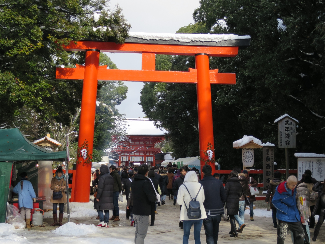 今年も昨年に続き、下鴨神社に初詣に行って来ました。舞殿には今年の干支の大絵馬がありました。で、肝心の初詣に中門を潜って本殿に行くと、工事中の様になっていました。それもそのはず。今年の4月に21年毎に行われる式年遷宮の前だったのです。そのため本殿にお参りした気がしませんでした。