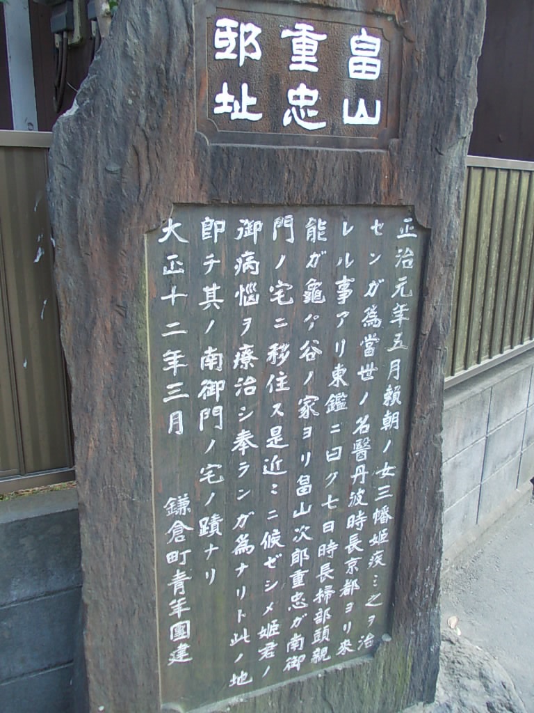 鎌倉幕府創建の功労者ではございましたが、今では遺構も残されておらず、わずかにこの石碑にのみ歴史の面影を残しておりました。