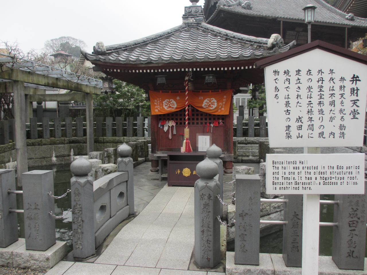 成田山に現存する建物の中で最古のものだそうで、見る価値があると思います。総門のすぐ左横にあるのに、ついつい素通りしてしまう人が多いのではないでしょうか。私も先月成田山をくまなく見たつもりだったのにこちらを見落としていたことに帰ってから気付いたので、出直して今回見ることができお参りしてきました。今回も、総門や仁王門のところには人がたくさんいるのですがこちらにはどなたもいらっしゃいませんでした。
