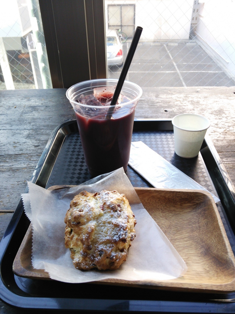 ちょうど焼き立てのクランベリーのスコーンと、アサイーのスムージーをいただきましが、とっても美味しいスコーンでした。友人が注文したコーヒーもとっても美味しいと言っていました。静かにお茶を楽しむ方にはおすすめのカフェです。