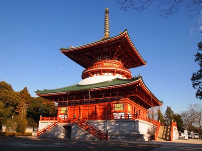 新勝寺の奥にある平和の大塔の一階に成田山新勝寺にゆかりのある品々が展示されています。そこを指しています。