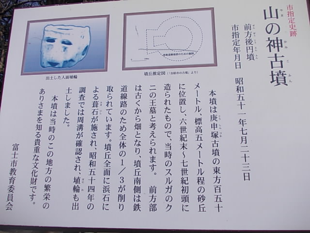 JR東海道本線の東田子の浦駅の傍、JR線のすぐ脇にあるのがこちらの古墳です。小さな神社がありますので、お参りをされていくのも良いかと思います。近くに庚申塚古墳もあり、両者を比較しながら古墳の風情を味わうのがお勧めです。庚申塚古墳はちょっと鬱蒼と木が生い茂っている雰囲気がありますが、こちらの古墳は木が疎らで、明るい雰囲気になっています。