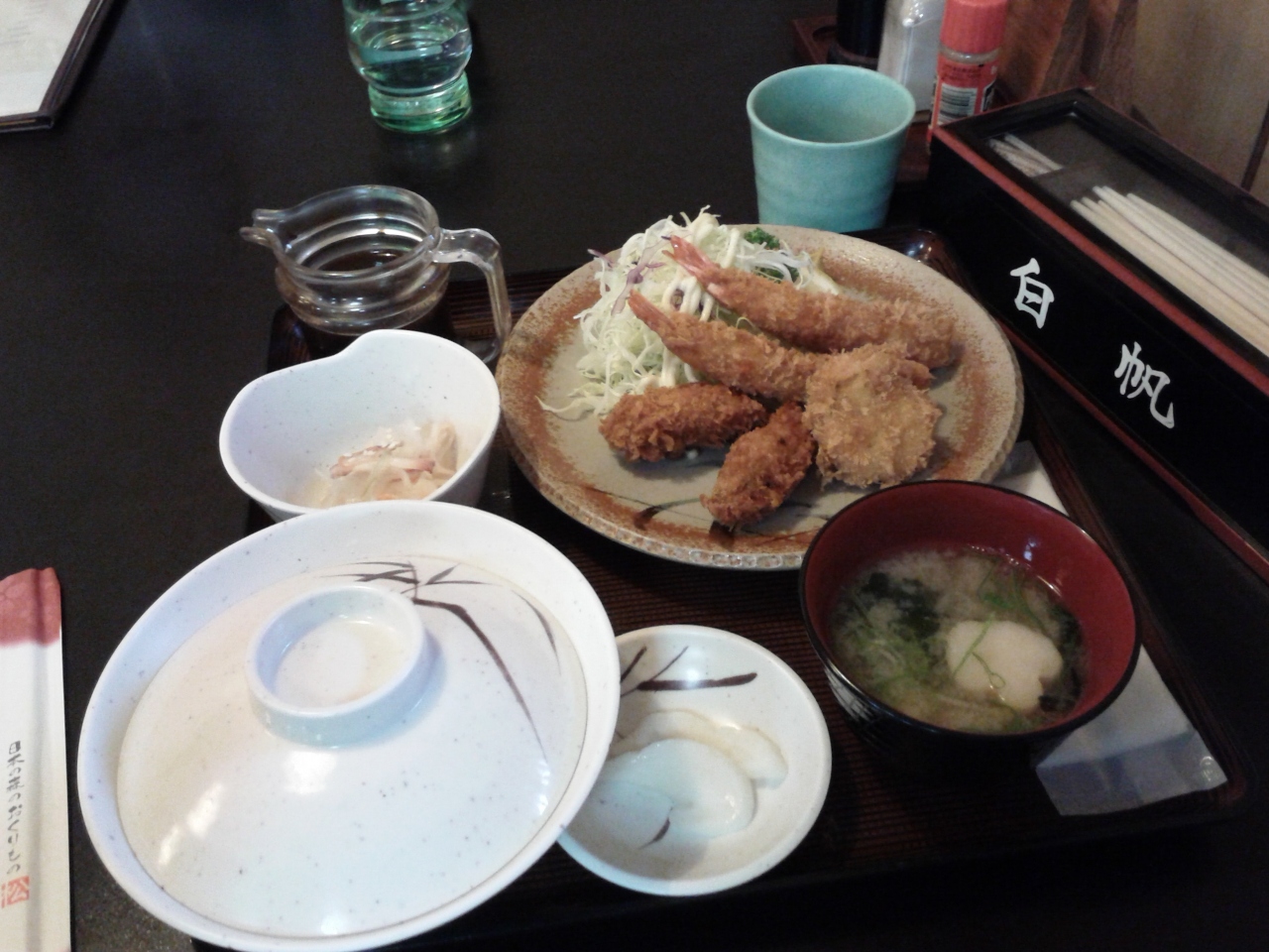 標津にいく用事があってその昼に、尾岱沼でランチを食べることになった。目的は北海島エビ天丼だ。北海シマエビは高級で高いのに天丼にしてしまうとは・・・価格は1300円くらいだったろうか?私はミックスフライ定食を注文した。どちらもとても美味しかった。
