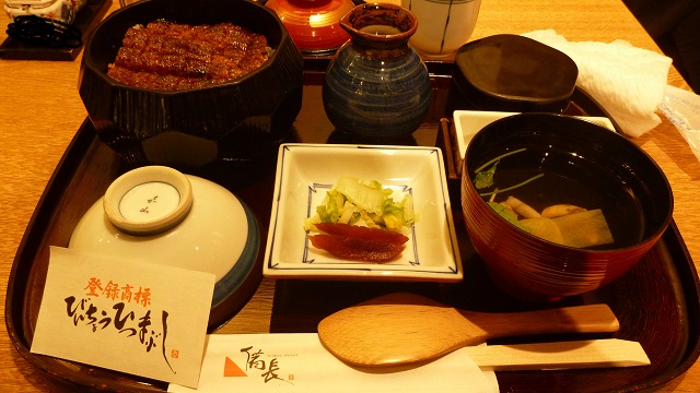 名古屋駅そばの地下街にあるひつまぶしの店。立地の良さもあるのか17時台の来店ながら混雑していた。うなぎは焼き加減がちょうどよく、たれとの絡みもよくおいしかった。めったに来ない土地に来たら名物をいただきたいので、おいしく堪能できてよかった。観光客らしく案内にあった食べ方の通り食してみた。