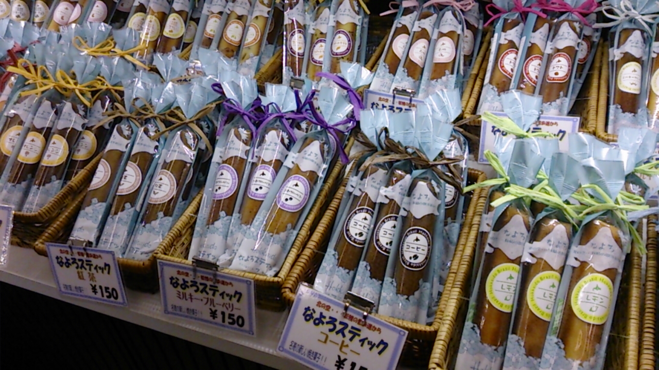 名寄で代表するスイーツ屋さんです。なよろプリンやシュークリーム、ショートケーキがおいしいのですが、あまり日持ちがしないので、お土産に買うのは、なよろスティックです。紅茶味からミルキー・ブルーベリー味、トマト味と24種もあります。フランスのフィナンシェルを基礎にしたバターやベースの素材を生かしたおいしい焼き菓子です。場所はJR名寄駅を背に80メートルほど歩いたところにあります。実は、この店、カフェもやっていて焼きカレーが個人的にはお気に入りです。営業時間は、午前10時30分から午後8時まで。火曜日が定休日です。なんでもおいしいなよろスイーツのお店です。