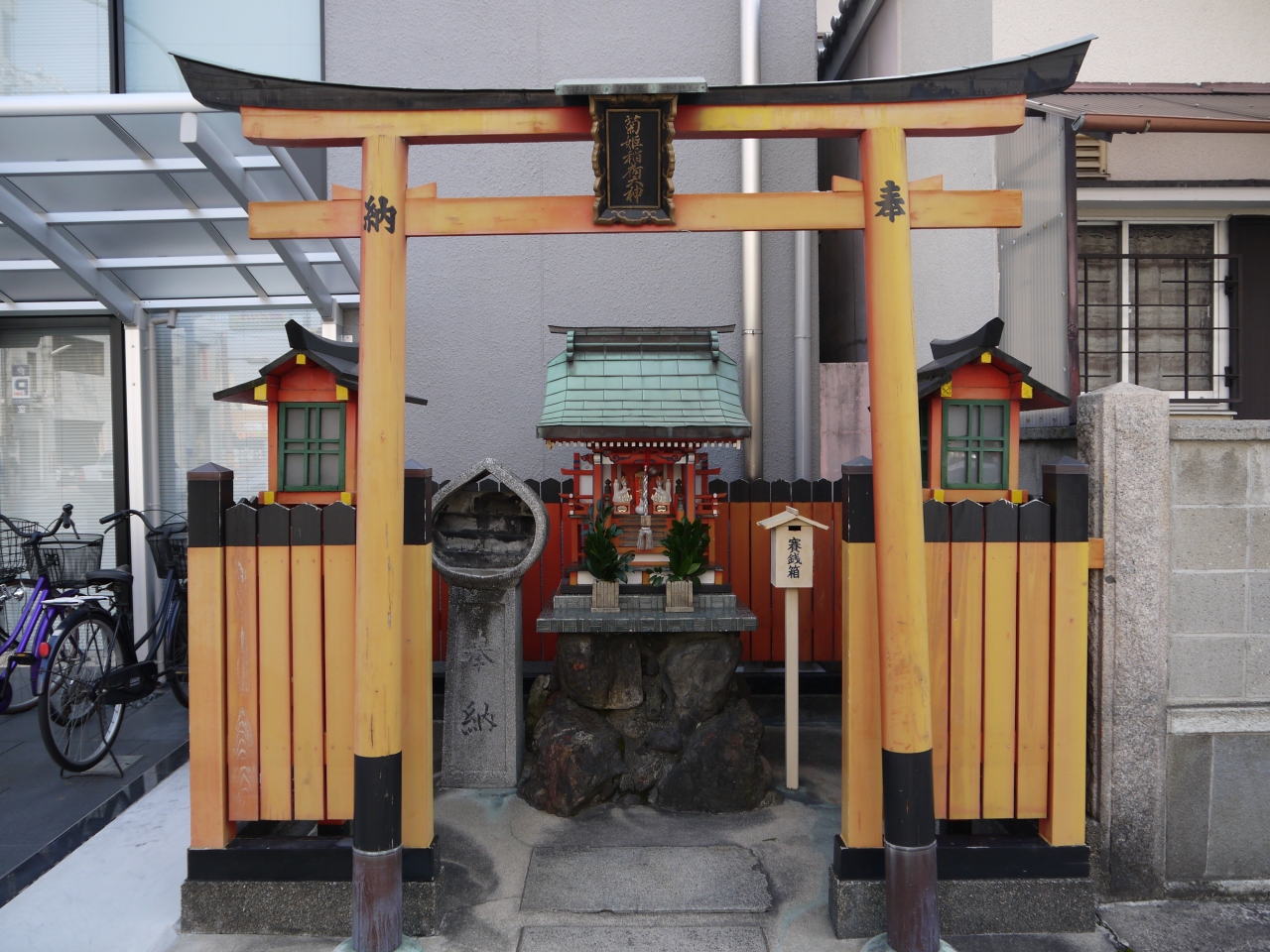 菊姫稲荷神社は、五条の寺町から回りました。といっても、場所が全然わからず。近所の人に聞いてやっと分かりました。ビルの脇。敷地の中に構えた神社は、普通の観光客では気が付かないでしょう。東京でも、街中にはこうした小さな神社がありますが、どこかのお屋敷にあったものではないかと思います。