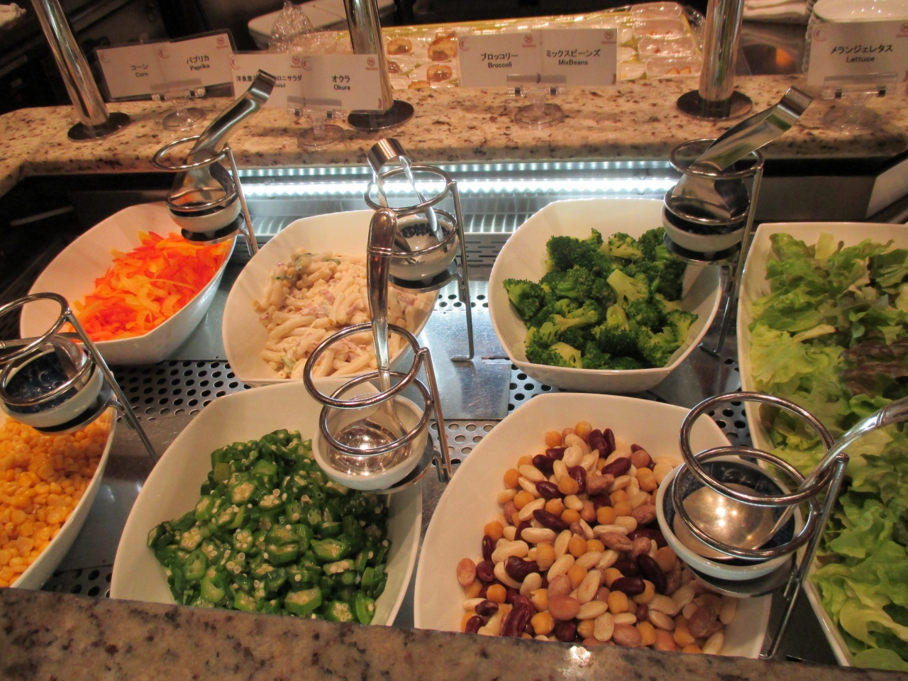 横浜のベイシェラトン内にあります。ビュッフェスタイルのレストラン。和食、洋食、中華、デザート、お寿司コーナーがあります。どれも美味しくいただけました。いくつかの料理はシェフが目の前で調理してくれます。キッズコーナーもありますが、種類は少なめ。デザートのクレームブリュレはすぐになくなってしまうほど人気がありました。料理が少なくなるとすぐに補充してくれますし、違う料理になったりとずっと楽しむことができます。人気があるレストランなので、予約は必須です。また、ぜひ行きたいレストランです。