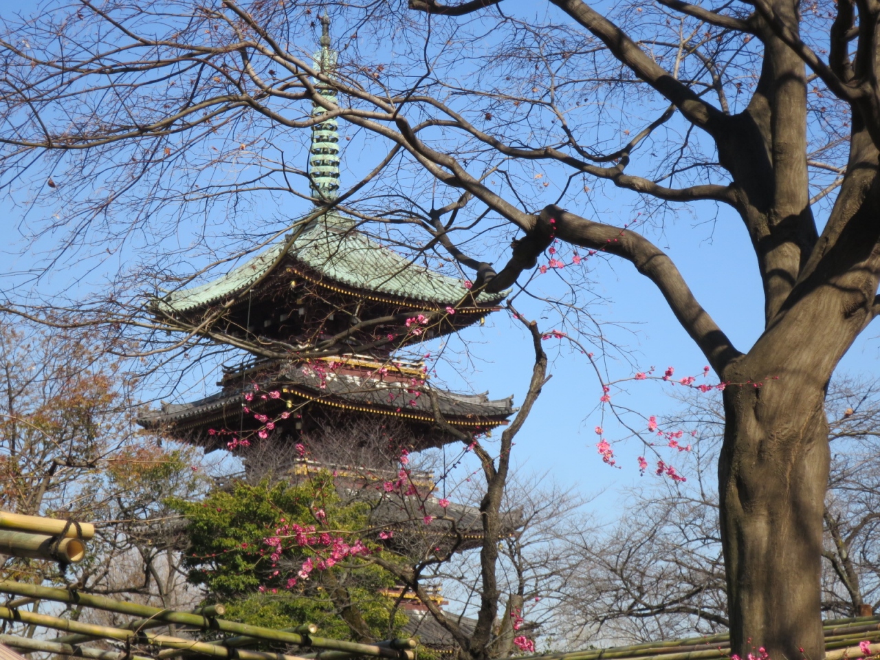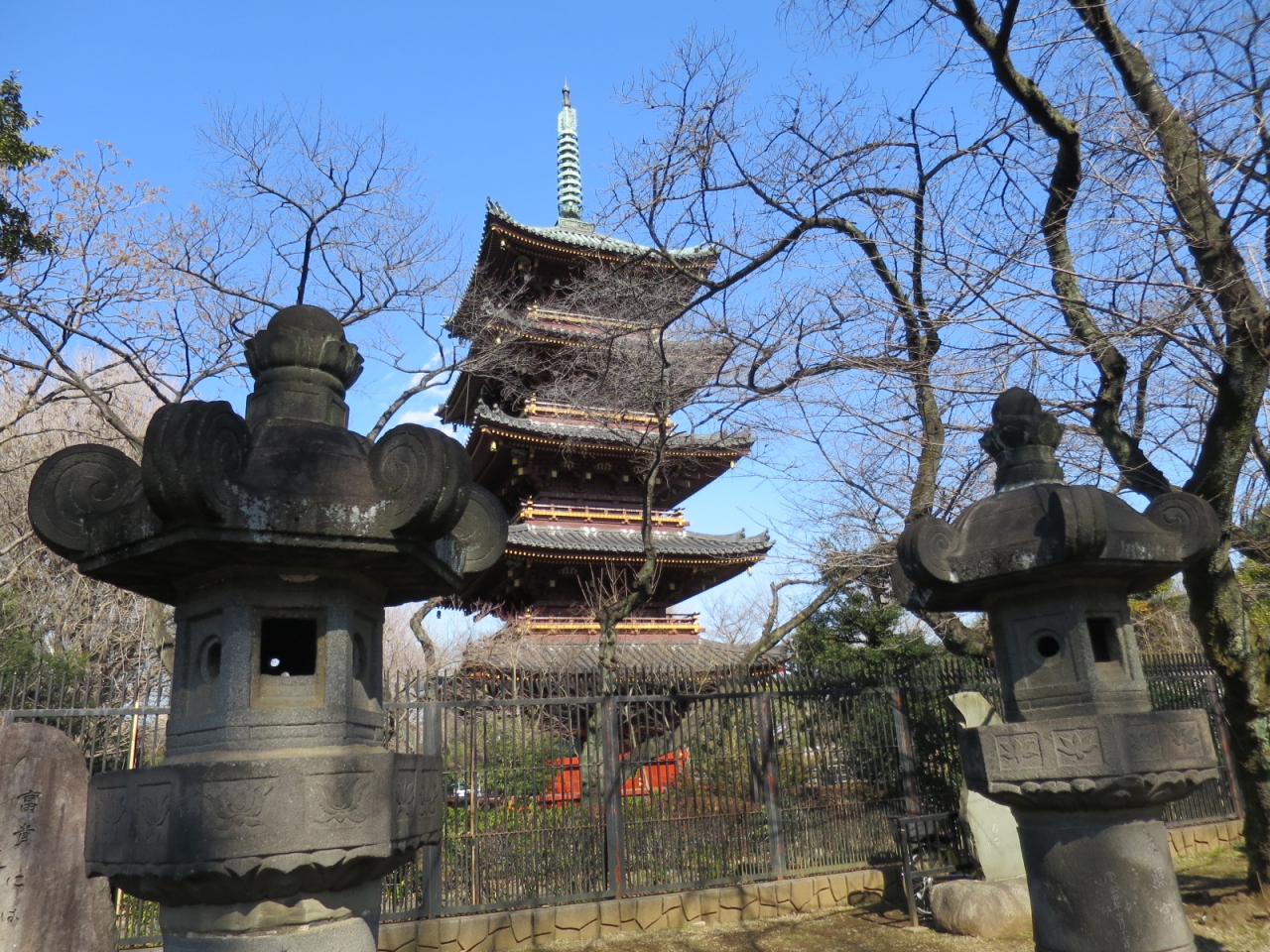 五重塔は上野動物園の敷地内なので、近くに行くには動物園に入園しなくてはなりません。しかし上野東照宮からは、ぼたん苑に入らない場合でも、参道沿いから無料で眺められます。居並ぶ石灯籠の隙間から見上げても風情があります。