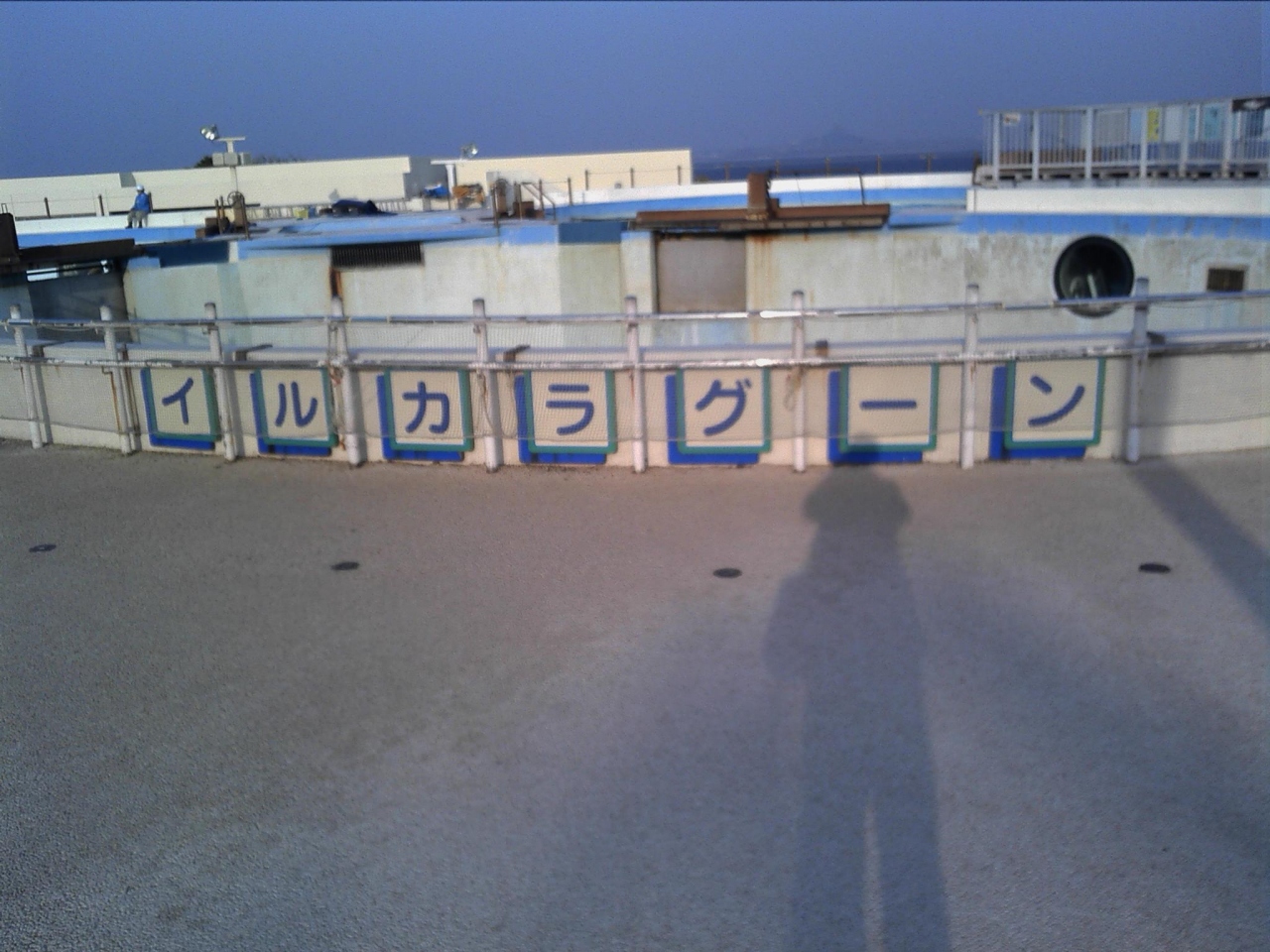 このイルカラグーンは、本部町にある海洋博公園内にあるオキちゃん劇場の横にある劇場プールです。プールでイルカの泳ぐ姿を観察できるので、通常ショーの合間には多くの人が集まりますが、今回訪れた時には残念ながらプール清掃中でした。