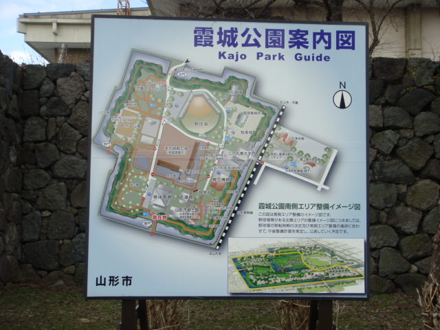 山形駅から徒歩15分程度のところに城跡公園はあります。公園内には一部の二の丸大手門が残っているものの、天守閣や櫓等のお城らしい建物は残っていなく、また野球場や