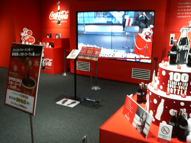 コカコーラ社のショールームという感じで、コーラボトルの100周年を記念したオブジェがあったり、体の動きに連動して画面内の物体が動くアトラクションを楽しめます。