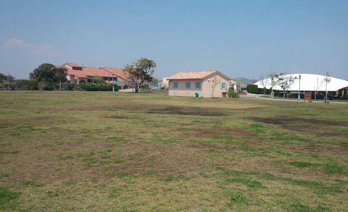 かまどが数え切れないほどあり、屋根つきで雨が降っても大丈夫です。広大な芝生があり、とても見晴らしが良いです。