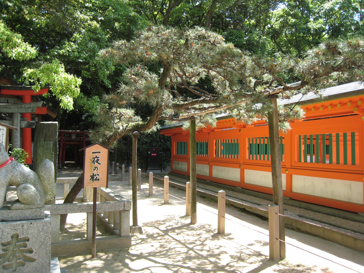 境内には御神木の一夜松や能楽殿、土俵があり、見どころがたくさんあります。