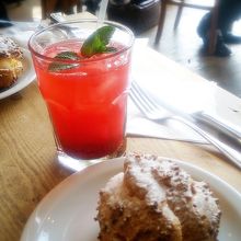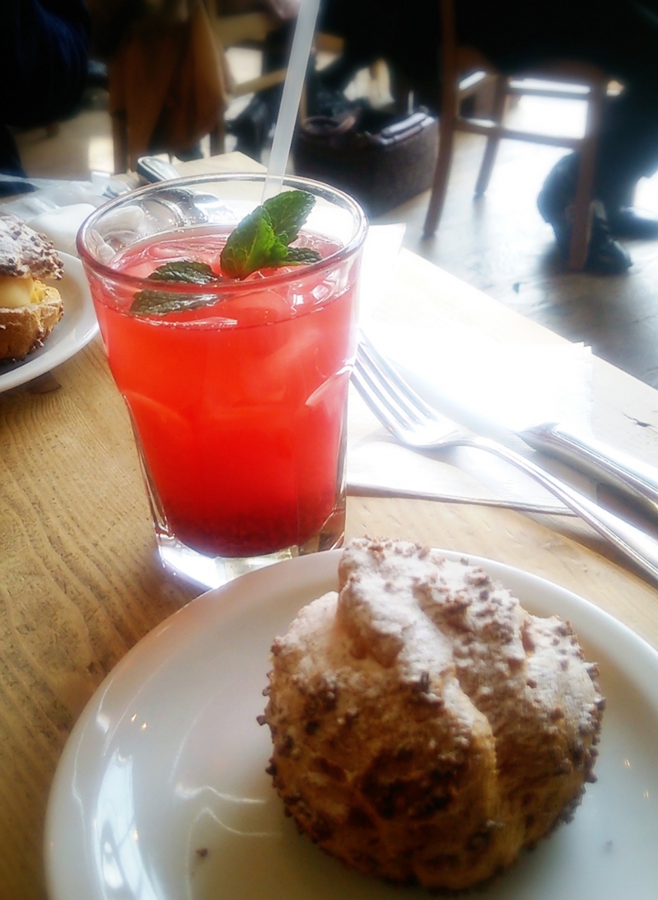 東京タワーからすぐの明るいパン屋さんのカフェです。昼食後だったのでお茶にしました。ケーキとかえらい高かったのでシュークリームとラズベリーレモネードにしました。
