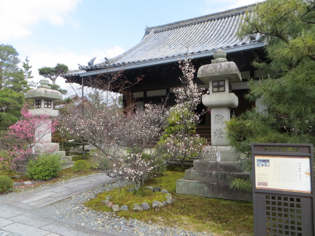 嵯峨野の清凉寺(地元民は嵯峨釈迦堂と呼びます)の境内、本堂の東にお堂(阿弥陀堂)があるのですが、平安時代にはここに源氏物語に登場する主人公・光源氏のモデルと言われる源融(みなもとのとおる)が住んでいた場所とされる・棲霞観(せいかかん)跡とのこと。説明書きを読んでしばし平安時代の面影を感じて満足。源氏物語ファンには必見です。