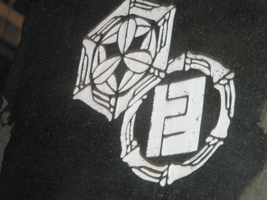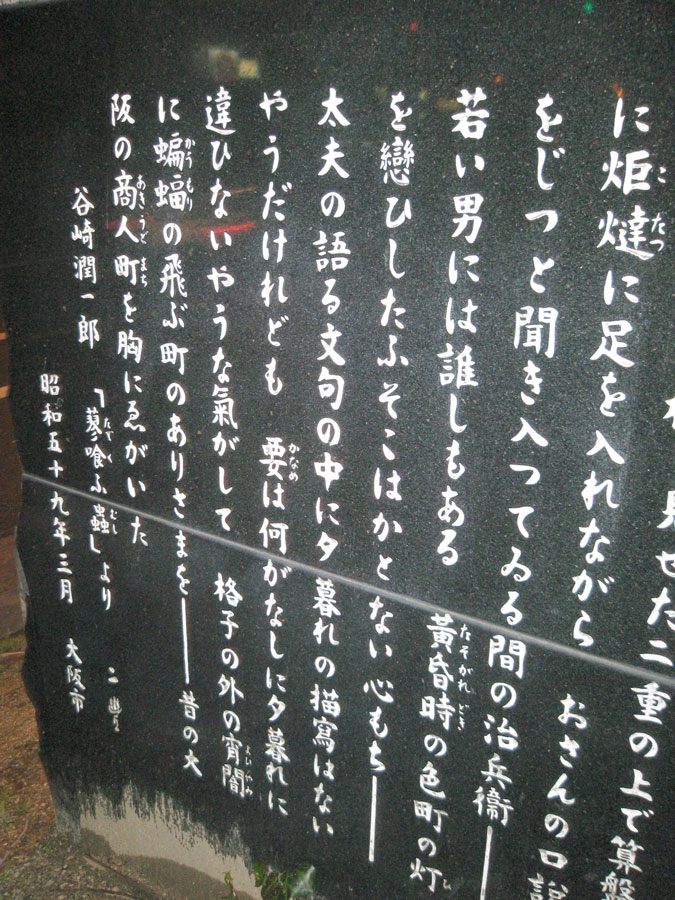 「国立文楽劇場」より少し日本橋方面に行ったところの植え込みの中にあります。