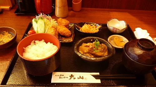 鹿児島中央駅の構内に入る店。夕食の場所を決めておらず、名物を食べたかったので入店。鹿児島黒豚を中心に扱う店で、さつま三昧膳を注文。小鉢にもきびなごなど県産の食材が使われていて、ご当地の雰囲気は味わうことができた。