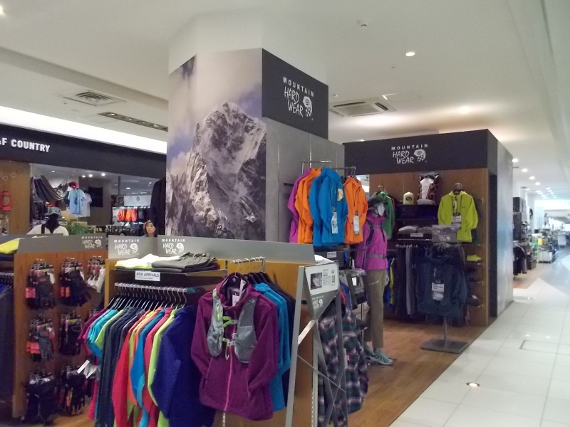 モンベル、ノースフェイス、コロンビア、フォックスファイアー、マーモット、ホグロフスなどが軒を並べます。